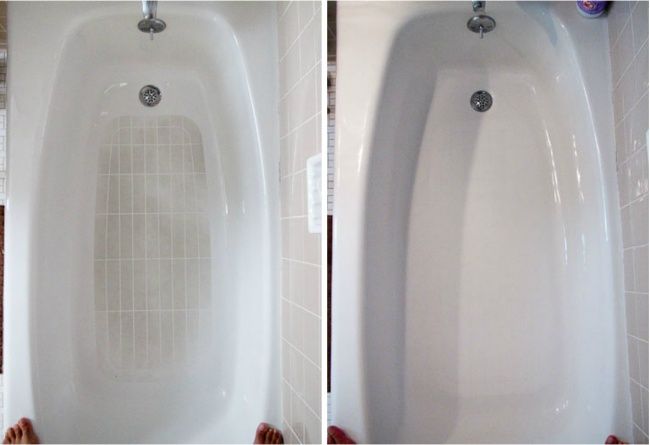 Ανακατέψτε 2 κουταλιές της σούπας αλάτι και 2 κουταλιές της σούπας μαγειρική σόδα και τρίψτε με αυτό το μείγμα την μπανιέρα. Μετά από 10 λεπτά, αναμιγνύετε 50γρ. ξύδι και 50γρ χλωρίνη και ρίξτε το πάνω από το μείγμα. Μετά από μισή ώρα ξεπλύνετε με άφθονο νερό.
