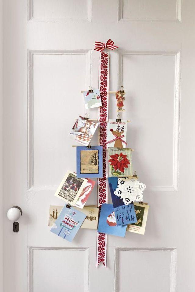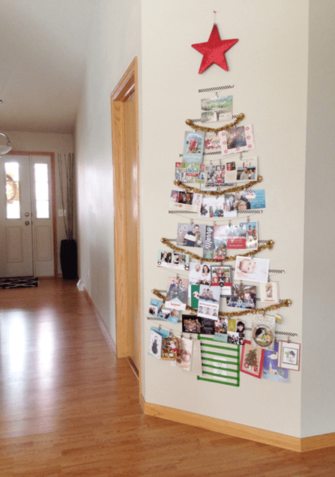 20. Κολλήστε χριστουγεννιάτικες κάρτες στο τοίχο σας και δημιουργήστε ένα χριστουγεννιάτικο δέντρο με αυτές