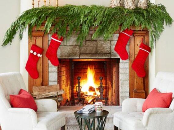 Κρεμάστε κάλτσες πάνω από το τζάκι σας και βάλτε και κεριά. Στη συνέχεια αγοράστε και στεφάνια και κρεμάστε πάνω από το τζάκι σας. Πραγματικά η ατμόσφαιρα θα είναι φανταστική με αυτή την διακόσμηση και θα νιώθετε τόσο γιορτινή την ατμόσφαιρα όσο ποτέ.