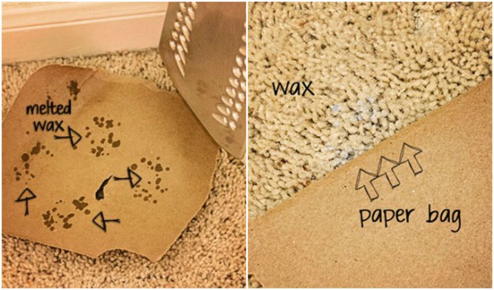 Αν σας έπεσε στο χαλί κερί, απλώστε ένα κομμάτι χαρτόνι και πατήστε το με σίδερο. Το κερί θα κολλήσει στο χαρτόνι και σταδιακά θα φύγει από το χαλί.Δειτε και εδω φανταστικα κόλπα καθαρίσματος
