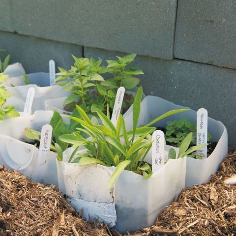 Κόψτε στη μέση τα μεγάλα πλαστικά δοχεία για να φυτέψετε μυρωδικά. Αν ο καιρός κρυώσει βάλτε από πάνω το άλλο μισό για να τα προστατέψετε.