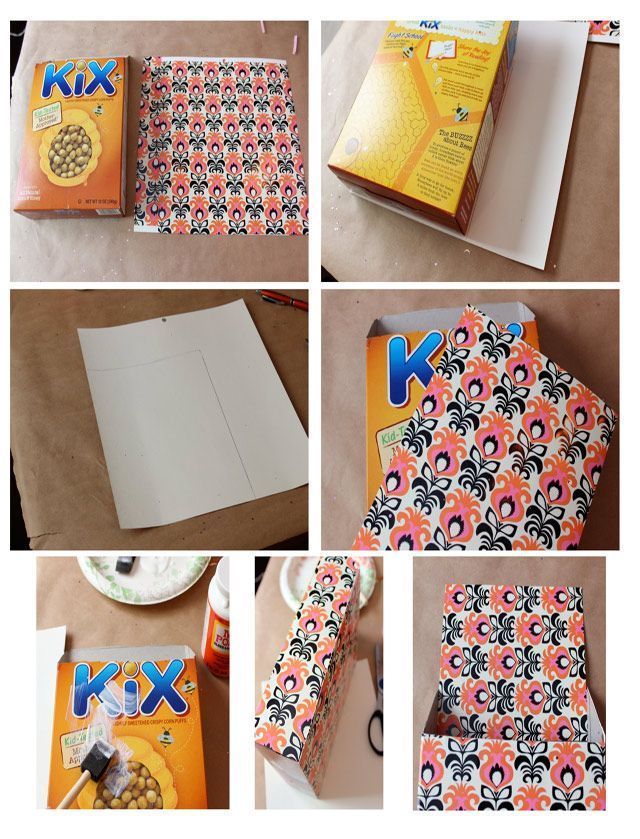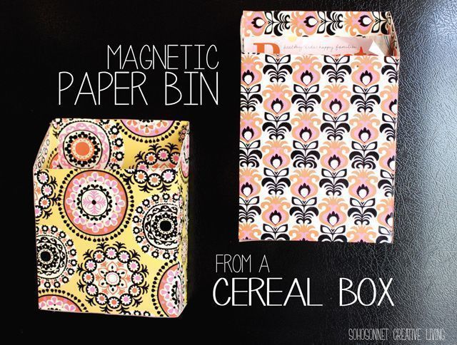 Οργανώστε αλληλογραφία ή περιοδικά με ένα κουτί δημητριακών που θα το περιτυλίξετε με καλλιτεχνικό χαρτί δικής σας επιλογής. Εδώ έχει μπει ένας μαγνήτης για να κολλήσει στη πόρτα του ψυγείου.