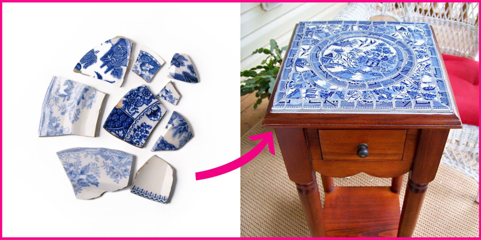 Δώστε μια δεύτερη ευκαιρία σε θρύψαλα πορσελάνης, φτιάχνοντας ένα μωσαϊκό για ένα έπιπλο.