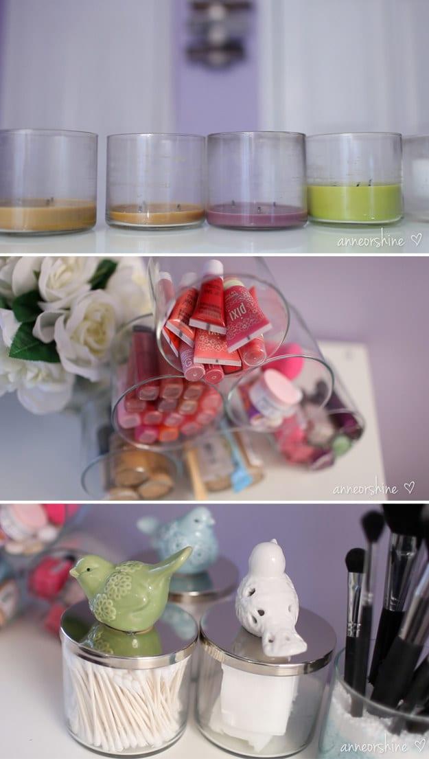 7. Καθαρίστε τις θήκες από τα κεριά που έχουν τελειώσει και χρησιμοποιήστε τις για να αποθηκεύσετε τα καλλυντικά σας και όχι μόνο