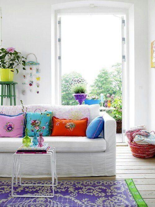 Ξεκινήστε από το σαλόνι σας! Για να πάρετε μια αίσθηση του καλοκαιριού βάψτε με ζωντανά και ζουμερά χρώματα – μπορείτε να αγοράσετε πολύχρωμα έπιπλα ή ταπετσαρίες, αλλά είναι συχνά αρκετό για να πάρετε κάποια αξεσουάρ όπως ριχτάρια ή κουρτίνες για να πάρετε την απαραίτητη ατμόσφαιρα – εύκολη και φιλική προς τον προϋπολογισμό! Αν δεν είστε fan των φωτεινών χρώματων, τα παστέλ δεν θα λιγότερο γοητευτικα για το καλοκαίρι-όπως φαίνονται. Προσθέτοντας ένα ζευγάρι από λεπτομέρειες όπως μια αιώρα ή ένα σερφ είναι μια απλή και διασκεδαστική ιδέα που θα κάνει το χώρο σας γοητευτικό. Εμπνευστείτε από τα τέλεια και στυλάτα παρακάτω παραδείγματα.