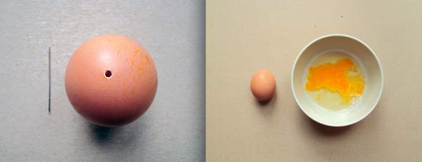Με μια καρφίτσα κάντε μια μικρή τρύπα στο αυγό με στόχο να αδειάσει εντελώς.Διακοσμήστε το αυγό σας!