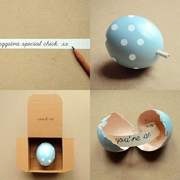Τοποθετήστε το μήνυμα μέσα στο αυγό και το αυγό σε ένα κουτί.