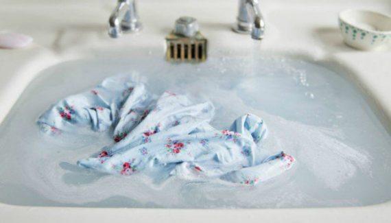 Μην ξεβγάζετε τη σαπουνάδα από τα ρούχα βάζοντάς τα κάτω από τρεχούμενο νερό. Βάλτε τα καλύτερα σε μια λεκάνη γεμάτη με καθαρό νερό.