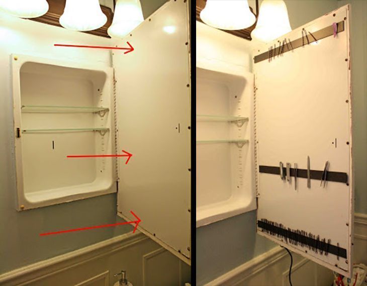 Τοποθετήστε μαγνητική ταινία στα ντουλάπια σας και κρατήστε σε μια μεριά τα τσιμπιδάκια,τους νυχοκόπτες και όλα τα μεταλλικά αξεσουάρ σας.