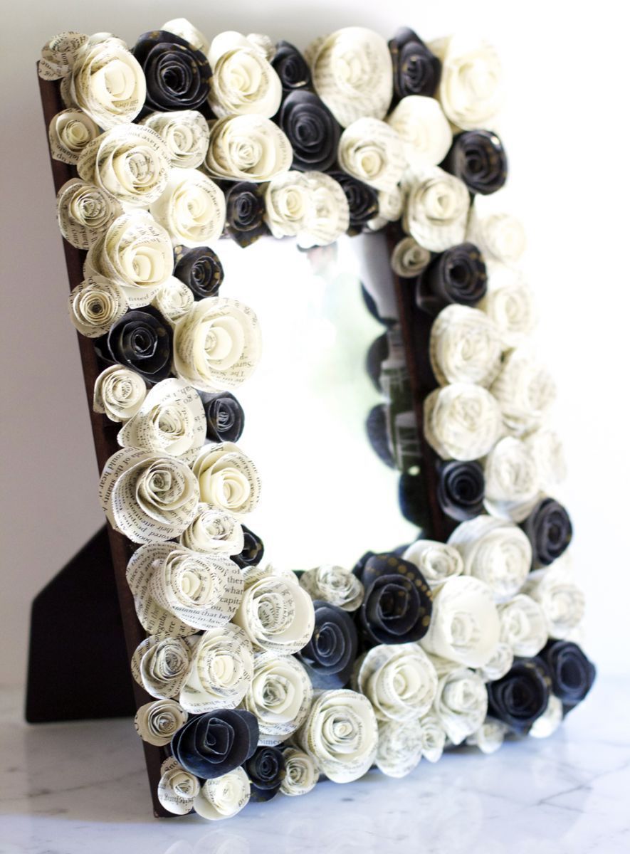Καλημέρα…Ξέρω ότι ποτέ κανένα βιβλίο δεν είναι άχρηστο,αλλά σίγουρα κάτι θα ξετρυπώσετε στο σπίτι για να φτιάξουμε την σημερινή μας κατασκευή.Ένας ωραίος & οικονομικός τρόπος για να ανανεώσετε μια παλιά σας κορνίζα που έχετε βαρεθεί είναι να την ‘ντύσουμε’ με χάρτινα λουλουδάκια.Συγκεντρώστε τα υλικά που χρειάζονται και ξεκινάμε!!!!