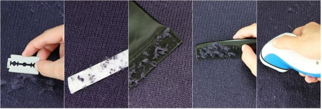 Ξυριστική μηχανή Μπορείτε να χρησιμοποιήσετε ξυριστική μηχανή ή ένα συνηθισμένο ηλεκτρικό ξυράφι. Περάστε το προσεκτικά πάνω από την επιφάνεια του υφάσματος στην κατεύθυνση της ύφανσης. Προσπαθήστε να μην πιέσετε την ξυριστική μηχανή πάρα πολύ σκληρά ενάντια στο ύφασμα.