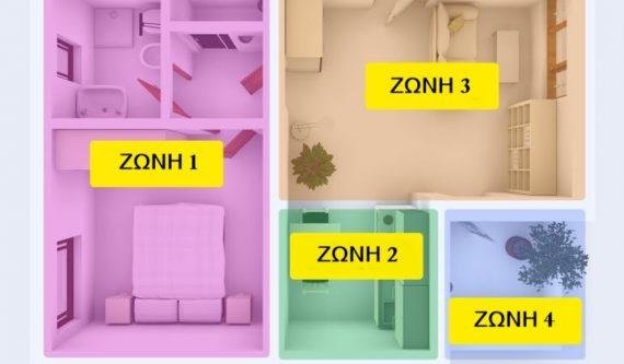 Η δεύτερη ζώνη περιλαμβάνει την κουζίνα και κάποιο άλλο δωμάτιο όπως είναι το παιδικό. Στην τρίτη ζώνη ανήκουν η τραπεζαρία και το σαλόνι. Τέλος στην τέταρτη ζώνη θα μπουν τα δωμάτια που περισσεύουν όπως είναι η αποθήκη, ο ξενώνας κοκ.