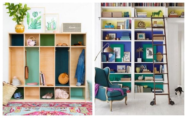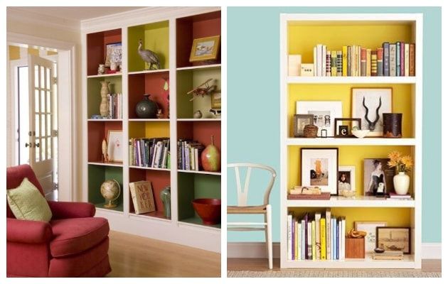 5. Σε κλειστές ραφιέρες-βιβλιοθήκες που καλύπτουν το μεγαλύτερο μέρος του τοίχου απλώς βάψτε σε διαφορετικές αποχρώσεις την πλάτη των χωρισμάτων που δημιουργούν τα ράφια.
