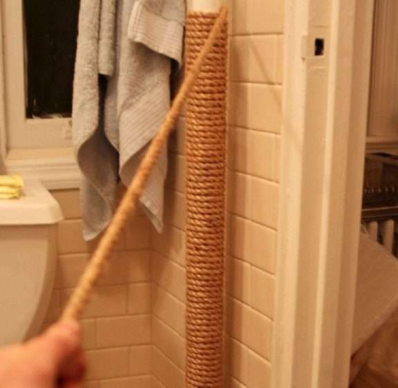 Καλύψτε τους άσχημους σωλήνες Αν το κτίριο στο οποίο ζείτε είναι παλιό, υπάρχουν μεγάλες πιθανότητες να περνάνε από το μπάνιο σας σωλήνες νερού. Εκμεταλλευτείτε τους για να προσθέσετε ένα νέο διακοσμητικό στοιχείο. Το μόνο που έχετε να κάνετε είναι να πάρετε το κλασσικό σχοινί και να το βάλετε περιμετρικά του σωλήνα.