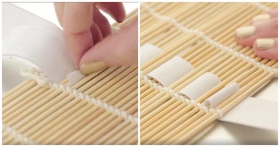 • Ένα σούσι ματ • Χοντρό λάστιχο • κορδέλα ή σπάγκο • Πιστόλι σιλικόνης