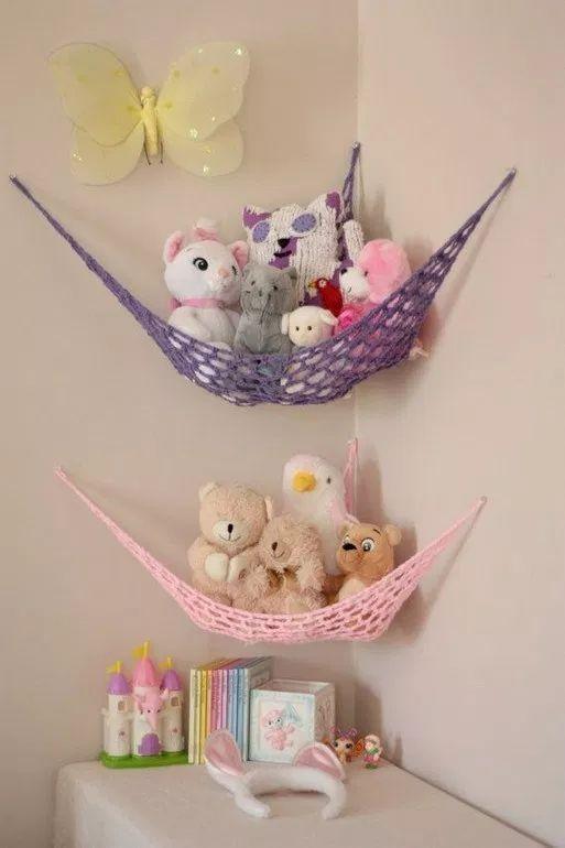 Παιχνιδο-αιώρες Mία έξυπνη και πρακτική λύση είναι να στερεώσετε μια αιώρα στις γωνίες του παιδικού δωματίου, την οποία θα γεμίσετε με τα παιχνίδια των παιδιών. Μπορεί να είναι φτιαγμένη από μαλλί πλεξίματος ή να είναι αυτοσχέδια από μια θήκη…μαξιλαριού.