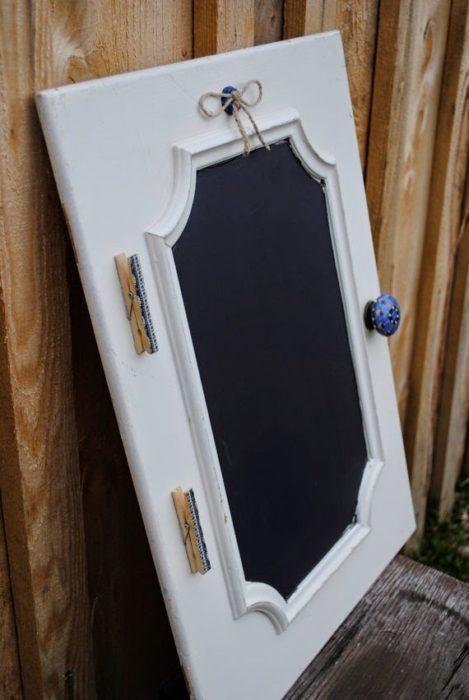 Θα το κάνετε είτε με την ειδική μπογιά που θα βρείτε σε χρωματοπωλεία σεμαύρο ή πράσινο χρώμα είτε, πολύ ευκολότερα, με αυτοκόλλητο χαρτί μαυροπίνακα που θα βρείτε σε καταστήματα με είδη σχεδίου, κατασκευών κλπ.
