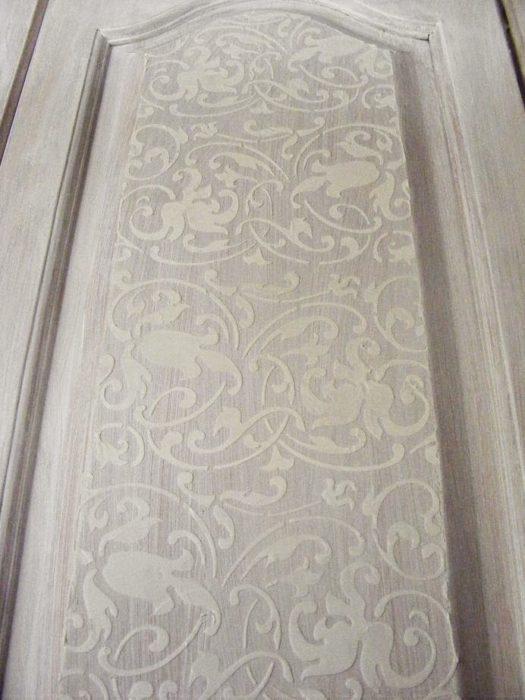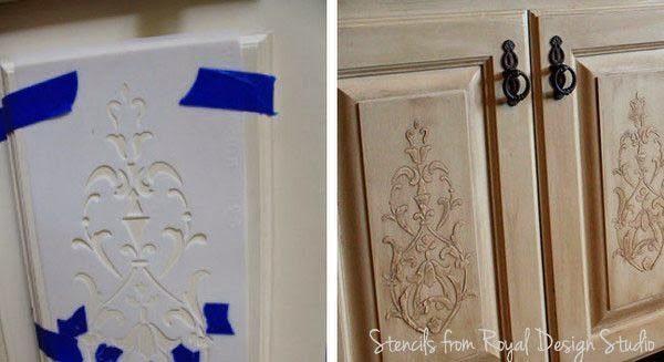 Με τα stencils, γενικά, το καλύτερο αισθητικά αποτέλεσμα θα σας το δώσουν οι ακρυλικές μπογιές νερού και επειδή συνήθως θα χρειαστείτε πολύ μικρή ποσότητα από κάθε χρώμα η πιο πρακτική αλλά και οικονομική επιλογή είναι τα ακρυλικά χρώματα γενικής χρήσης για κατασκευές ή και τα ακρυλικά χρώματα νερού για ζωγραφική, ενώ μια επίσης πολύ εντυπωσιακή τεχνική είναι η εφαρμογή stencil με στόκο και σπάτουλα ή μπογιά περιγράμματος αντί για κοινό χρώμα μπογιά έτσι ώστε όταν στεγνώσει και απομακρύνετε το stencil το σχέδιο έχει ανάγλυφη υφή και στην περίπτωση του στόκου μπορείτε στην συνέχεια και να το βάψετε σε όποια απόχρωση θέλετε. Αν δεν έχετε εμπειρία γενικά με τα stencils, με όποιο τρόπο κι αν θέλετε να δουλέψετε, το …ασφαλέστερο είναι να κάνετε πριν ορισμένες δοκιμές πάνω σε ένα άχρηστο κομμάτι ξύλου ή και χοντρό χαρτόνι, να δείτε το αποτέλεσμα και του συγκεκριμένου σχεδίου και του είδους μπογιάς-υλικού που θέλετε να χρησιμοποιήσετε και πως ακριβώς γίνεται και στην συνέχεια να προχωρήσετε στην κανονική εφαρμογή πάνω στο ντουλάπι.
