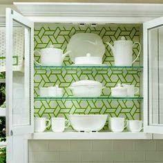 Επιλέγοντας χρώματα και μοτίβα ταιριαστά με το γενικό ύφος της κουζίνας σας μπορείτε να πετύχετε πραγματικά την συνολικήτης …μεταμόρφωση, ενώ με μερικά κομμάτια ταπετσαρίας θα αλλάξετε εντελώς και την εμφάνιση του εσωτερικού κάποιων ντουλαπιών, π.χ σε κάποια που πιθανόν διαθέτουν γυάλινεςδιαφανείς πόρτες ή να την χρησιμοποιήσετε για να ντύσετε το πίσω μέρος του τοίχου που βρίσκονται κάποια ράφια, εντελώςανοιχτά ντουλάπια κλπ. Αν η διαμόρφωση της κουζίνας σας δεν διαθέτει τέτοια σημείαμπορείτε απλώς να τα δημιουργήσετε. Θα χρειαστεί μόνο να …καταργήσετε τα πορτάκια από 1-2 ντουλάπια και να τα μετατρέψετε σε …ανοικτές ραφιέρες.