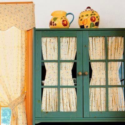 Εκτός από την χρήση του με τον ίδιο τρόπο όπως και την αυτοκόλλητη ταπετσαρία στοεξωτερικό μέρος από τα πορτάκια, ύφασμα μπορείτε να χρησιμοποιήσετε και σαν “κουρτινάκια” τόσο στοεσωτερικό ντουλαπιών που διαθέτουν γυάλινα – διαφανή πορτάκια ή και …αντί για πορτάκι σε ορισμένα ντουλάπια, με ποιο κλασσική επιλογή εκείνο κάτω από τον νεροχύτη.