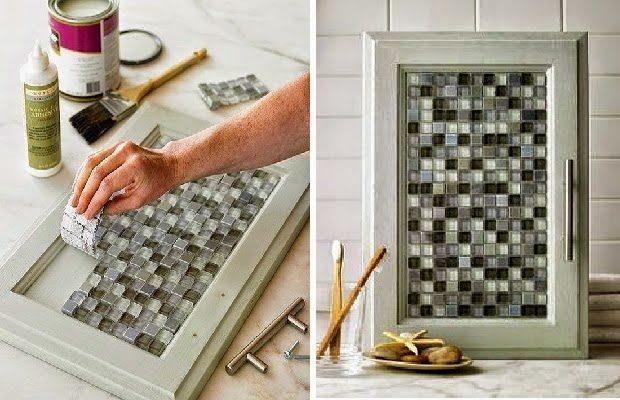 Επιλέξτε λοιπόν σε ποια ντουλάπια θα ταίριαζε περισσότερο μια τέτοια μετατροπή και δεν θα χρειαστείτε παρά λίγη κόλλαπλακιδίων που πάνω της θα τοποθετήσετε τα πλακάκια σε όποιοσχηματισμό θέλετε. Διαλέξτε όσο πιο λεπτά σε πάχοςκεραμικά-διακοσμητικά πλακάκια από τα οποία στην αγορά θα βρείτε πολύ μεγάλη ποικιλία σχεδίων και αποχρώσεων. Εξαιρετικό αποτέλεσμα για αυτήν ακριβώς την χρήση θα δώσουν και τα πλακάκια – ψηφίδες, που θα βρείτε σε καταστήματα με πλακάκια και είδη σπιτιού ενωμένες ήδη πάνω το ειδικό πλέγμα και θα μετατρέψουν την επιφάνεια κάποιων ντουλαπιών σε …ψηφιδωτό, ενώ το μόνο που σε αυτήν την περίπτωση θα πρέπει να προσέξετε είναι η κατασκευή και η γενική κατάσταση του ντουλαπιού να είναι τέτοια που να αντέχει το επιπλέον βάρος που θα προσθέσουν τα πλακάκια χωρίς σε λίγο διάστημα το πορτάκι να “κρεμάσει“.