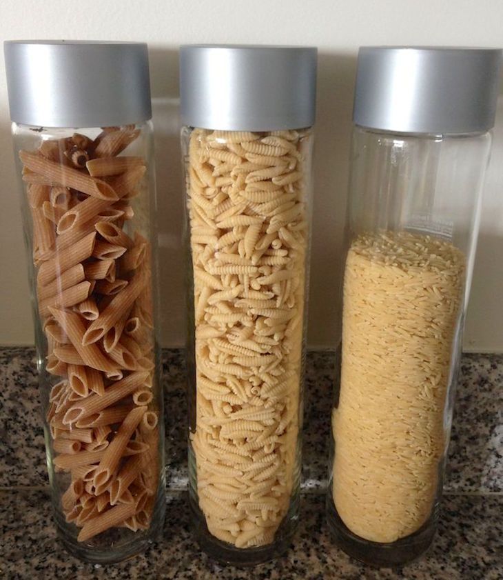 Κάποια μπουκάλια νερού και ποτών με καπάκια και μεγάλο στόμιο είναι ιδανικά για να αποθηκεύσετε μακαρόνια και άλλα ζυμαρικά.
