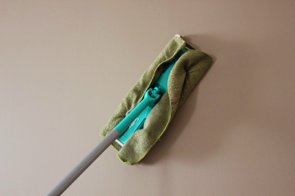 Για μια γενική καθαριότητα ξεκινήστε σκουπίζοντας τον τοίχο, κατά προτίμηση με αυτά τα πανάκια που εφαρμόζονται στην άκρη των ειδικών κονταριών. Έτσι θα απομακρυνθεί τυχόν σκόνη που υπάρχει και που μπορεί, όταν στη συνέχεια πλυθεί ο τοίχος, να δημιουργήσει λεκέδες. Εναλλακτικά μπορείτε να «περάσετε» τον τοίχο με την ηλεκτρική σκούπα, εφαρμόζοντας στην άκρη της το ειδικό εξάρτημα για τοίχους και ταβάνια.