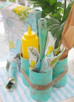 Και όχι μόνο τα κονσερβοκούτια από αναψυκτικά, μπύρες, γάλατα, κονσέρβες, αλλά και τα δοχεία από τις μπογιές που βάψατε το σπίτι και τα μεταλλικά κουτιά από μπισκότα, καφέδες, και όποιο άλλο “άχρηστο”τενεκεδάκι που τις πιο πολλές φορές, χωρίς δεύτερη σκέψη, καταλήγει στα σκουπίδια. Αν θα τα αφήσετε στην φυσική τους μορφή, θα τα βάψετε, θα τα επενδύσετε με ύφασμα – ταπετσαρία – φελλό – σκοινί – χαρτί – ξυλαράκια – αυτοκόλλητες ταινίες  ή ό,τι άλλο,μεμονωμένα ή δημιουργώντας “τενεκεδένιες” συνθέσεις, αν θα τα χρησιμοποιήσετε ως κηροπήγια, φαναράκια,γλάστρες, ανθοδοχεία, μολυβοθήκες ή θα φτιάξετε “ντουλαπάκια” και επιπλέον αποθηκευτικούς χώρους για κάθε είδους αντικείμενο, αν θα προτιμήσετε να τα αξιοποιήσετε για συνθέσεις στο τραπέζι ή για να φτιάξετε μια παιδική …ντραμς, ταϊστρες για τα πουλιά, μια …ονειροπαγίδα για το μπαλκόνι, φωτιστικά  ή ένα φωτάκι νύχτας, είναι αποκλειστικά θέμα γούστου και φαντασίας. Το μόνο σίγουρο, πως τα απλά τενεκεδένια κουτιά κάθε είδους μπορούν να σας φανούν και πολύ χρήσιμα αλλά και να ομορφύνουν το σπίτι, το μπαλκόνι ή την αυλή σας με χίλιους διαφορετικούς και ιδιαίτερα πρωτότυπους τρόπους.