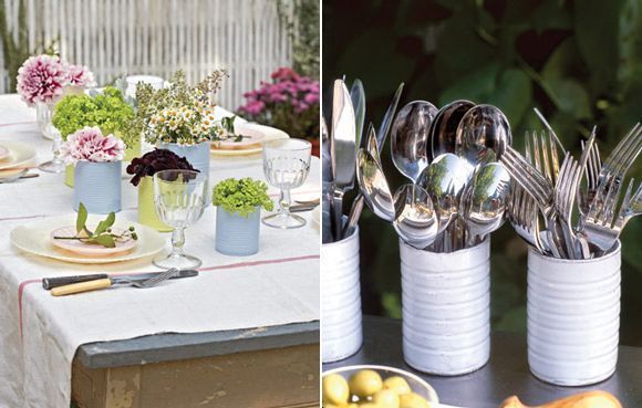 Αν θα τα αφήσετε στην φυσική τους μορφή, θα τα βάψετε, θα τα επενδύσετε με ύφασμα – ταπετσαρία – φελλό – σκοινί – χαρτί – ξυλαράκια – αυτοκόλλητες ταινίες ή ό,τι άλλο,μεμονωμένα ή δημιουργώντας “τενεκεδένιες” συνθέσεις, αν θα τα χρησιμοποιήσετε ως κηροπήγια, φαναράκια,γλάστρες, ανθοδοχεία, μολυβοθήκες ή θα φτιάξετε “ντουλαπάκια” και επιπλέον αποθηκευτικούς χώρους για κάθε είδους αντικείμενο, αν θα προτιμήσετε να τα αξιοποιήσετε για συνθέσεις στο τραπέζι ή για να φτιάξετε μια παιδική …ντραμς, ταϊστρες για τα πουλιά, μια …ονειροπαγίδα για το μπαλκόνι, φωτιστικά ή ένα φωτάκι νύχτας, είναι αποκλειστικά θέμα γούστου και φαντασίας. Το μόνο σίγουρο, πως τα απλά τενεκεδένια κουτιά κάθε είδους μπορούν να σας φανούν και πολύ χρήσιμα αλλά και να ομορφύνουν το σπίτι, το μπαλκόνι ή την αυλή σας με χίλιους διαφορετικούς και ιδιαίτερα πρωτότυπους τρόπους.