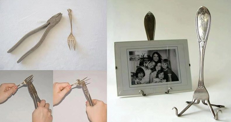 Ένα όμορφο πιρούνι μπορείς να το μετατρέψεις σε μια κορνίζα. Χρειάζεσαι μόνο μια τανάλια και φαντασία. Αν το πιρούνι σου προεξέχει της κορνίζας τότε καλό είναι να διαλέξεις ένα που θα έχει ένα ωραίο σχεδιάκι στο πάνω μέρος.