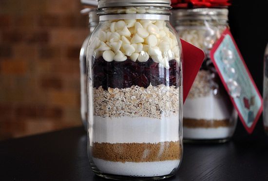 Ένα πολυ καλαίσθητο, όμορφο, πρωτότυπο και φθηνό δώρο είναι το να βάλεις μέσα σε ένα βάζο σε στρώσεις όλα τα υλικά που απαιτεί μια συνταγή για μπισκότα και να κρεμάσεις επάνω του τις οδηγίες παρασκευής! Τέλειο; Η νοστιμότατη ιδέα προέρχεται από το The creative Junkie.