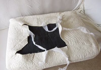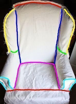 Δεν θα χρειαστείτε τίποτα άλλο εκτός από καρφίτσες και τα κομμάτια του υφάσματος ακουμπισμένα στο έπιπλο από την …ανάποδη όψη τους.