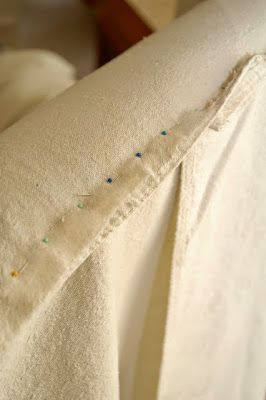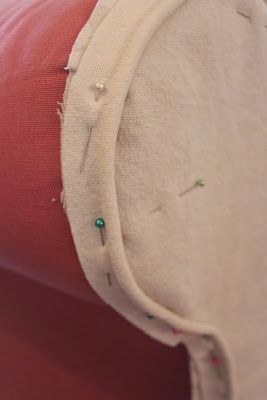 * Επόμενο στάδιο είναι να …μοντάρετε-ράψετε με καρφίτσες τα κομμάτια υφάσματος πάνω στο έπιπλο για να πάρουν την μορφή καλύμματος.
