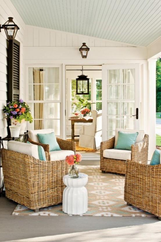 Εμπνευσμένες από παραλία και θάλασσα– βεράντες είναι στη μόδα, και για να γίνουν χρειάζονται κοράλλια, κοχύλια, αστερίες και να προσθέστε καλαμωτές ή απλά λευκά έπιπλα. Τα φωτεινά χρώματα και τα πολλά πράσινα φυτά και λουλούδια είναι καταπληκτικά για κάθε καλοκαιρινή βεράντα, οπότε αφήστε τη φαντασία σας να οργιάσει και απολαύσετε κοκτέιλ στη βεράντα σας.