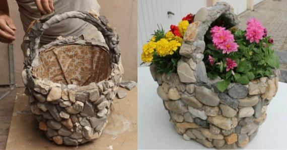 Δείτε όλη τη διαδικασία παρακάτω καθώς και άλλες ιδέες με μεγαλύτερες κατασκευές από πέτρα στο σχήμα καλαθιού.
