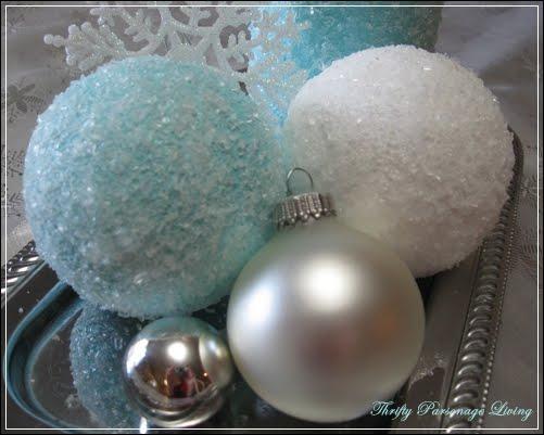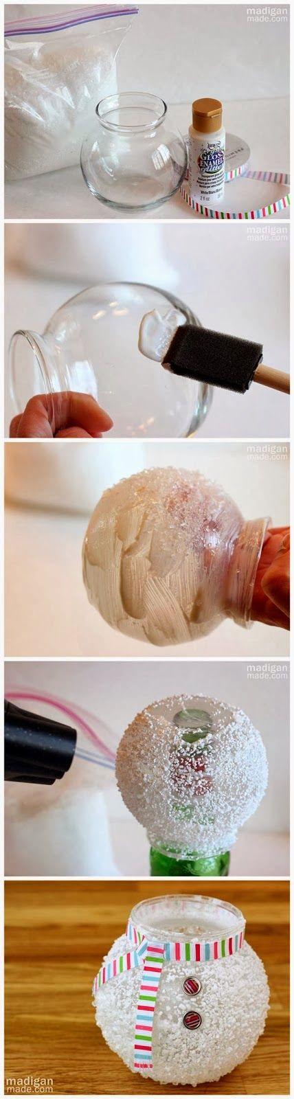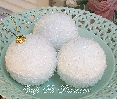Περνάμε ένα χέρι κόλα τη μπάλα (μπορεί να γίνει και με διάφανα βαζάκια εκτός απο μπάλες) και μετά την κυλάμε στο αλάτι να πάει παντού. Μόλις στεγνώσει τινάζουμε το αλάτι που περισσεύει. Εαν θέλουμε μπορούμε να ψεκάσουμε με ένα βερνικάκι σε σπρέυ για καλύτερο φινίρισμα.
