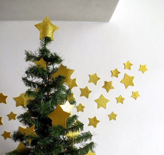 - Το δέντρο σας μαζί με τα λαμπάκια και αυτά τα αστέρια για στολίδια δεν χρειάζεται τίποτα άλλο.Είναι μια φθηνή ιδέα που θα εντυπωσιάσει μικρούς και μεγάλους!