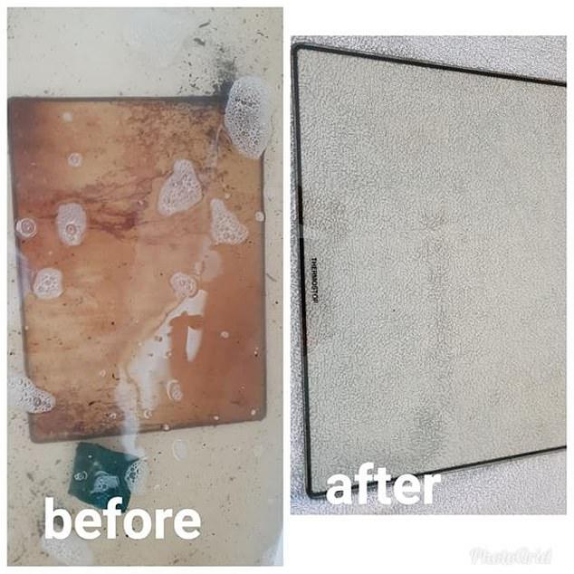 «Άνοιξα την βρύση του μπάνιου στο ζεστό νερό . Τύλιξα την σχάρα με αλουμινόχαρτο και την άφησα στην μπανιέρα» έγραψε μια γυναίκα. «Απλά έβαλα μια ταμπλέτα πλυντηρίου πιάτων από πάνω. Και τα άφησα για δύο ώρες. Στη συνέχεια, πήγα στο μπάνιο, και σκούπισα τη σχάρα με την μαγική γόμα. Δεν χρειάστηκε να καταβάλω καθόλου προσπάθεια».