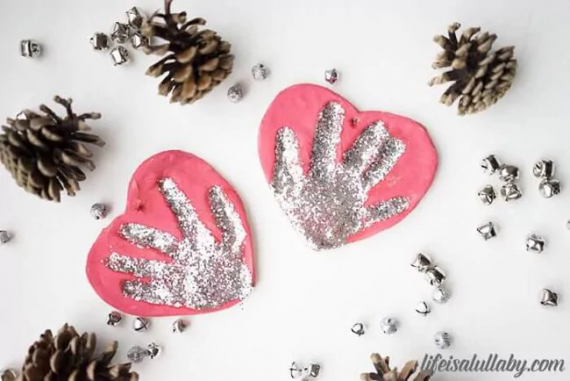 11. Στολίδια με τα αποτυπώματα των χεριών στολισμένα με γκλίτερ