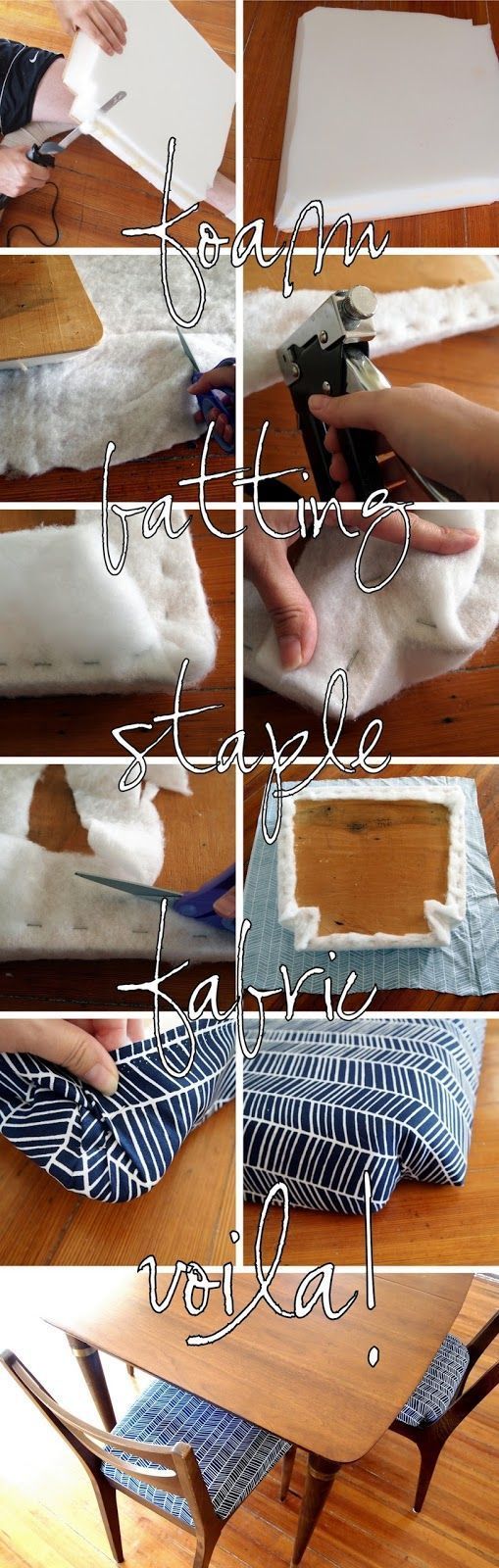 Για να αρχίσετε την μεταμόρφωση των επίπλων σας, το μόνο που χρειάζεστε είναι να έχετε λίγες δεξιότητες στο ράψιμο, κάποια εργαλεία , ένα μπιστολάκι σιλικόνης, ένα σφυρί και ένα κατσαβίδι. Ξεκινήστε με κάτι απλό όπως είναι μια καρέκλα και στη συνέχεια όταν θα αισθανθείτε σιγουριά για τις δεξιότητες σας μπορείτε να προχωρήσετε σε ένα καναπέ σαλονιού. Ξεκινήστε λοιπόν, ψωνίζοντας το αγαπημένο σας χρώμα υφάσματος καθώς και ένα αφρώδες υλικό σε περίπτωση που σας χρειαστεί.