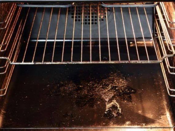 Αρχικά, παίρνουμε μαγειρική σόδα , υγρό πιάτων και κιτρικό οξύ. Ανακατεύουμε όλα τα υλικά μαζί, τηρώντας την αναλογία 1 προς 1. Αφού τα έχουμε ανακατέψει καλά, απλώνουμε την πάστα σε ελαφρώς προθερμασμένο φούρνο και την αφήνουμε να δράσει για 15-20 λεπτά.
