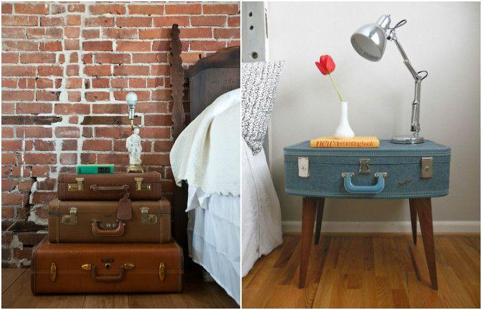Πώς θα φτιάξετε ένα κομοδίνο από βαλίτσες; Στοιβάξτε τη μία επάνω στην άλλη και κρεμάστε έναν καθρέφτη στον πίσω τοίχο. Ο καθρέφτης θα εμπλουτίσει την κατασκευή και επιπλέον, θα βελτιώσει το φωτισμό του δωματίου σας.