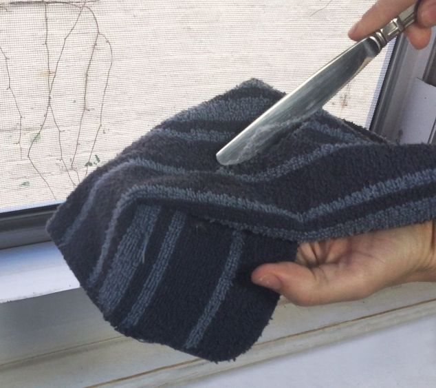 ΒΗΜΑ 5: Είναι λίγο δύσκολο να διεισδύσετε στις σχισμές με μια οδοντόβουρτσα, οπότε πάρτε ένα μαχαίρι για βούτυρο και τυλίξτε ένα παλιό κουρέλι πάνω σε αυτό, έτσι ώστε να μπορείτε ακόμα κάπως να αισθάνεστε τη λεπίδα μέσα από το ύφασμα.