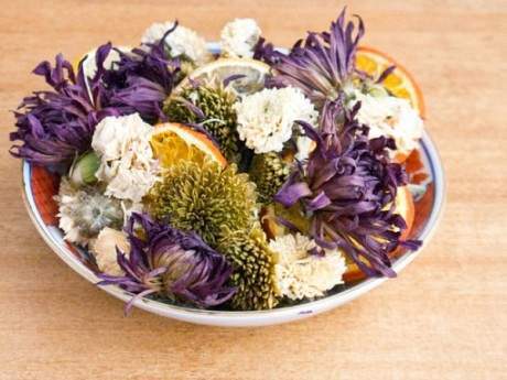 Φτιάξτε όμορφα διακοσμητικά ποτ πουρί από αποξηραμένα λουλούδια, δίνοντας ξανά ζωή σε ένα μαραμένο μπουκέτο λουλουδιών, αρωματίζοντάς το με τα αγαπημένα σας αρώματα. Βάλτε μέσα διάφορα βότανα, κομμάτια πορτοκαλιού, ψεκάστε το με το αγαπημένο σας αιθέριο έλαιο και δημιουργήστε μία σύνθεση που θα στολίσει και παράλληλα θα αρωματίσει τον χώρο σας.