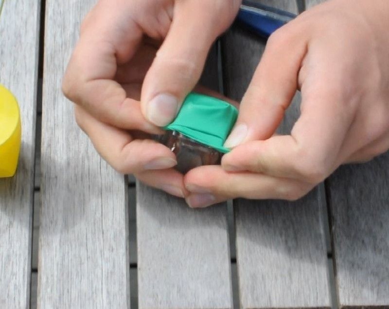 Τώρα τραβήξτε το μπαλόνι πάνω από το χείλος του ποτηριού. Φροντίστε να μην σκίσετε το μπαλόνι με τα νύχια σας.