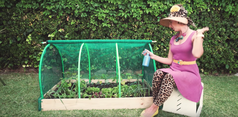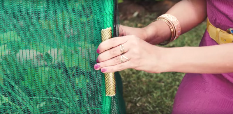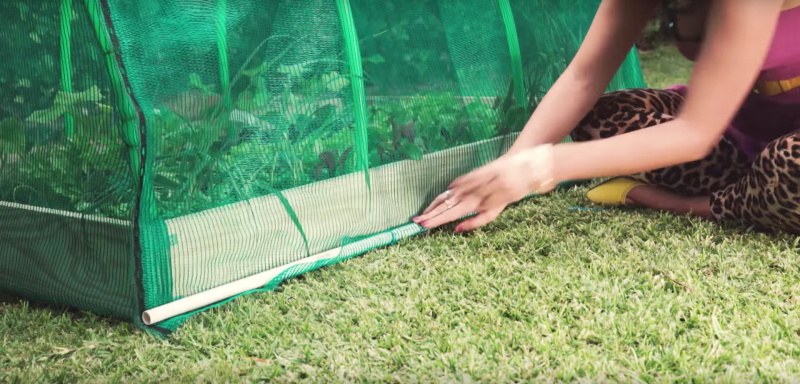 Στο τελικό στάδιο βάλτε ένα μεγάλο κομμάτι από δικτυωτό ύφασμα καλύπτοντας το υπόλοιπο του κήπου σας. Μπορείτε να το στηρίξετε σε ένα πλαστικό κοντάρι ώστε να μπορείτε εύκολο να το τραβάτε πάνω κάθε φορά που θέλετε να ποτίζετε τα φυτά στο κήπο σας