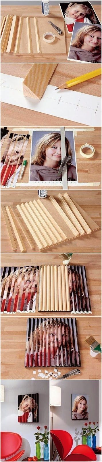 Μπορείτε επίσης να φτιάξετε το 3D εικόνα σας,πάνω σε λεπτά ξύλα για μια εντυπωσιακή διακοσμητική κορνίζα!Ακολουθείτε την ίδια διαδικασία,μόνο που τώρα κολλάτε τις λωρίδες από τις φωτογραφίες,πάνω στις πλευρές των ξύλων.