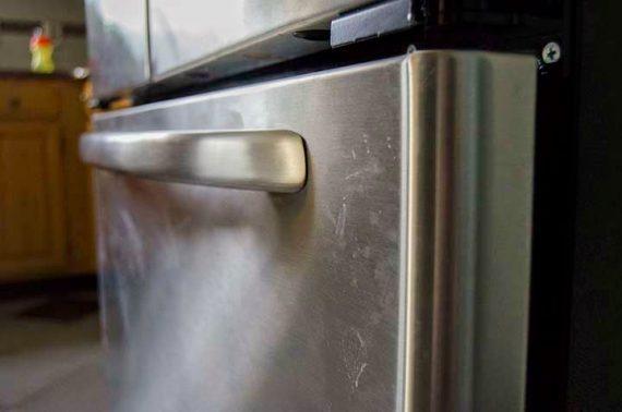 Για να διώξετε δαχτυλιές και άλλους λεκέδες από τα inox ψυγεία φτιάξτε ένα διάλυμα από 1/3 νερό, 2/3 λευκό ξύδι και μερικές σταγόνες απορρυπαντικό πιάτων. Βάλτε το διάλυμα σε ένα μπουκάλι με σπρέι, ανακινήστε καλά και ψεκάστε το ψυγείο. Είναι βασικό, για να το σκουπίσετε, να χρησιμοποιήσετε ένα στεγνό πανί με μικροΐνες –όπως αυτό.