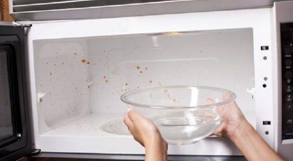Βάλτε σε ένα γυάλινο μπολ ένα μέρος νερό και ένα μέρος ξύδι, τοποθετήστε το στο εσωτερικό του φούρνου μικροκυμάτων και βάλτε τον σε λειτουργία για 5 λεπτά. Ο ατμός θα διαλύσει κάθε λεκέ που έχει κολλήσει στα τοιχώματα! Σκουπίστε, τελειώνοντας, με ένα στεγνό πανί.