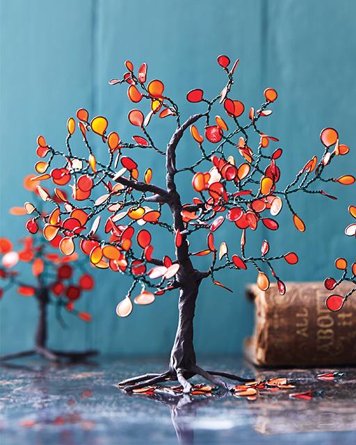 Φτιάχνετε τον κορμό και τα κλαδιά από σύρμα,το καλύπτετε με ταινία και φτιάχνετε τα φυλλαράκια με την τεχνική που είδαμε στο βίντεο.